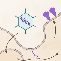 Le vaccin d'Oxford-AstraZeneca, à l'instar du vaccin Spoutnik V ou de l'Ad26.COV2.S de Johnson & Johnson, utilise comme vecteur viral un adénovirus (famille de virus très courants responsables notamment de rhumes). Le vecteur adénovirus est incapable de réplication car certains de ses gènes essentiels ont été supprimés et remplacés par un gène codant la protéine S des spicules S de SARS-CoV-2 (la protéine complète, codon optimisée, à laquelle a été ajoutée une séquence signal tPA)[39],[40]. Lors de la vaccination, le virus modifié pénètre dans les cellules, libère ses gènes qui sont transportés vers le noyau, la machinerie cellulaire transcrit en acide ribonucléique messager (ARN messager) puis traduit en protéines, dont la protéine S, éduquant le système immunitaire à la reconnaître[41].
