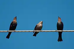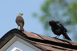 Le Vacher à tête brune (Molothrus ater) est une espèce d'oiseaux de la famille des Icteridae. Le mâle est noir, à tête brune, et la femelle d'un gris-brun plus terne. Cette espèce pratique le parasitisme de couvée, c'est-à-dire que la femelle pond ses œufs dans les nids d'autres espèces d'oiseaux et s'affranchit donc ainsi de l'incubation et de l'élevage des poussins[1]. Cet oiseau grégaire d'Amérique du Nord, à l'origine inféodé aux grands troupeaux de bisons du Midwest, a connu un fort accroissement de population aux XIXe et XXe siècles. Il fait, au début du XXIe siècle, l'objet d'une campagne d'éradication controversée dans certaines zones des États-Unis, ayant pour but de préserver certaines espèces d'oiseaux en danger qui sont victimes de son parasitisme.