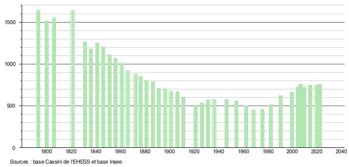 - ↑ Population municipale de référence en vigueur au 1er janvier 2025, millésimée 2022, définie dans les limites territoriales en vigueur au 1er janvier 2024, date de référence statistique : 1er janvier 2022.
