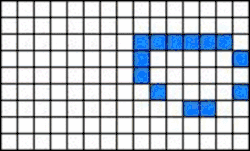 Le planeur appelé "The Ants"[2]par John Conway | C'est le plus petit vaisseau du jeu de la vie : cinq cellules contenues dans un carré de trois cellules sur trois. Il se déplace d'une case en diagonale toutes les quatre générations, pour une vitesse de C/4. | 1970 | |
