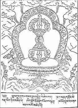 Illustration d’un texte nyingma ; la légende compare le vajra au «mystère de l’esprit, conscience de tous les bouddhas»