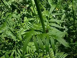 Les feuilles caulinaires, opposées, portées par un long pétiole, sont profondément divisées en un nombre impair, variable selon la sous-espèce, de folioles. Elles sont longues de 15 à 35 cm, composées de pennes aigus et dentés.