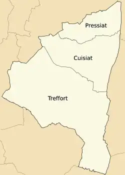 La commune nouvelle est formée des trois communes déléguées de Treffort, Cuisiat et Pressiat.