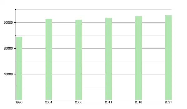 La population de Val-d'Or est plutôt stable depuis le début des années 2000, oscillant autour de 30 000 habitants. D'ailleurs, elle comportait 32 752 habitants lors du recensement du Canada de 2021[18]. Avec une population estimée à 33 382 habitants en 2024, elle est la 35e ville la plus populeuse du Québec[19].