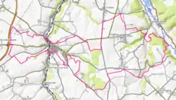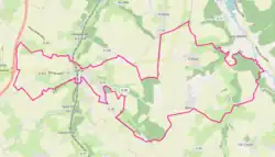 - ↑ Les ruisseaux intermittents sont représentés en traits pointillés.