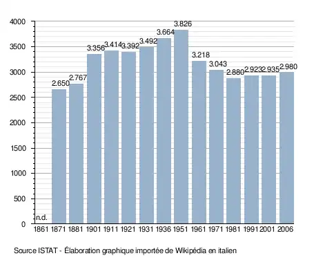 - ↑ (it) Popolazione residente e bilancio demografico sur le site de l'ISTAT.