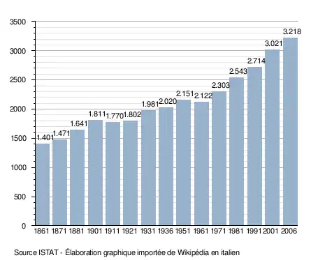 - ↑ (it) Popolazione residente e bilancio demografico sur le site de l'ISTAT.