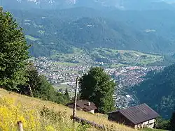 La vallée de Primiero vue du sud depuis l'église de San Silvestro. | |||