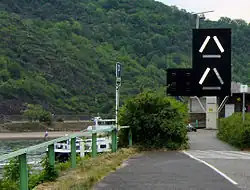 La navigation est relativement dangereuse sur ce tronçon, d'une part pour la déclivité relativement importante du fleuve et d'autre part pour le relief traversé, qui détermine un cours parfois sinueux et des rochers dans le lit du fleuve, comme aux environs de la Loreleï. Ce qui fonde sans doute pour partie la légende de celle-ci, mais qui a aussi justifié la mise en place d'un système de gestion de la circulation des bateaux, le Wahrschau am Mittelrhein / Middle Rhine Warning System.