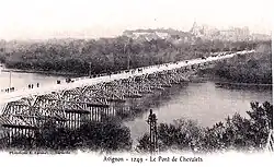 Dès 1791, date de la réunion d'Avignon à la France, se posa le problème de la liaison entre les deux rives du Rhône. La solution d'un pont de bois dit à chevalet fut retenue. Les travaux débutèrent en 1806 et furent terminés en 1820[40].