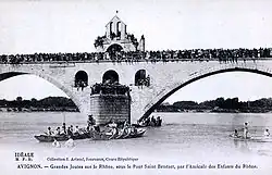 Le pont de bois s'étant écroulé sous le passage des croisés de Philippe le Bel et de Richard Cœur de Lion, en 1190, il dut être reconstruit en pierre, en 1244[25]. Alors que ce pont était en pleine construction, le , dans le couvent de Saint-Just à Lyon, s'ouvrit le XIIIe concile œcuménique présidé par Innocent IV[26]. Ce fut au cours de celui-ci que les frères de l'Œuvre du Pont de cette cité rédigèrent une lettre affirmant que Bénézet avait été le fondateur de leur premier pont[25].