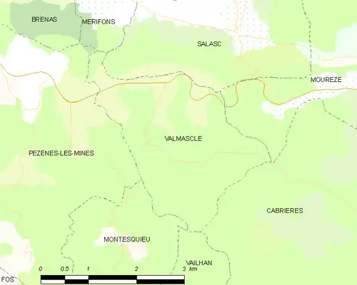 - ↑ « Orthodromie entre Valmascle et Roujan », sur fr.distance.to (consulté le ).