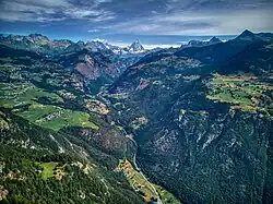 Vue aérienne du haut Valtournenche et du Cervin. | |||