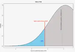 La VaR (de l'anglais value at risk, mot à mot : « valeur à risque », ou « valeur en jeu ») est une notion utilisée généralement pour mesurer le risque de marché d'un portefeuille d'instruments financiers. Elle correspond au montant de pertes qui ne devrait être dépassé qu'avec une probabilité donnée sur un horizon temporel donné.