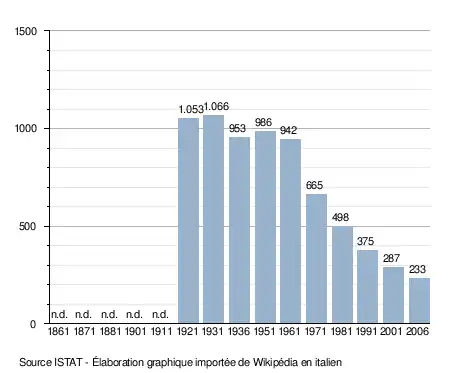 - ↑ (it) Popolazione residente e bilancio demografico sur le site de l'ISTAT.