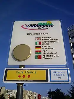 - ↑ « Pour un développement économique - Actualités - Ville de Vandœuvre-lès-Nancy »(Archive.org • Wikiwix • Archive.is • Google • Que faire ?), sur vandoeuvre.fr (consulté le ).