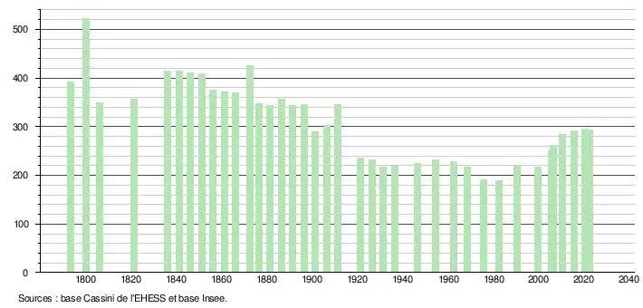 - ↑ Population municipale de référence en vigueur au 1er janvier 2025, millésimée 2022, définie dans les limites territoriales en vigueur au 1er janvier 2024, date de référence statistique : 1er janvier 2022.