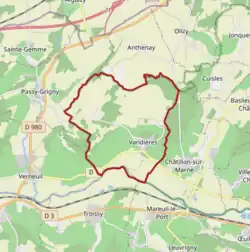 - ↑ « Orthodromie entre Vandières et Chambrecy », sur fr.distance.to (consulté le ).