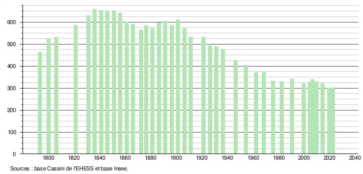 - ↑ Fiches Insee - Populations de référence de la commune pour les années 2006, 2007, 2008, 2009, 2010, 2011, 2012, 2013, 2014, 2015, 2016, 2017, 2018, 2019, 2020, 2021 et 2022.