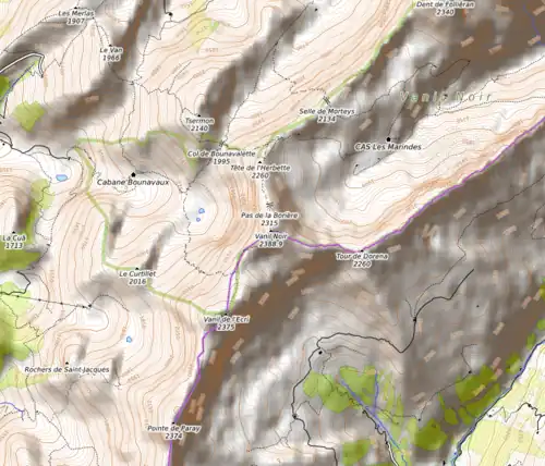 L'arête sud-ouest se prolonge vers le Vanil de l'Ecri (2 376 mètres) et la pointe de Paray (2 374 mètres).
