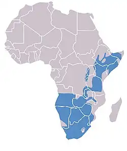 Le Vanneau couronné est un oiseau commun à très commun, à la fois comme résident et migrateur partiel. Il est répandu à toutes les altitudes jusqu'à 3 000 m[20],[8],[12]. Son aire de distribution s'étend le long de l'Afrique de l'Est, de l'Éthiopie et la Somalie jusqu'au sud de l'Angola et l'Afrique du Sud, en passant par le Kenya[12],[8]. Le Botswana et plusieurs régions d'Afrique du Sud, le Nord-Ouest, le Gauteng et l'État libre, forment le cœur de son aire de répartition[8]. En revanche, il est quasiment absent des zones arides au sud-ouest de la Namibie et reste rare à l'ouest du Cap-Nord, au Lesotho, au Transkei et au sud du Mozambique[8]. Il est absent des côtes au sud de Malindi et aux alentours du Lac Victoria[12].