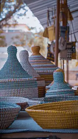 La vannerie est particulièrement pratiquée au Nord-Ouest du Botswana, avec un usage généralisé et des motifs traditionnels[92]. Les techniques vannières du Botswana ont même été réappropriées par les Wounaan en Colombie[93].