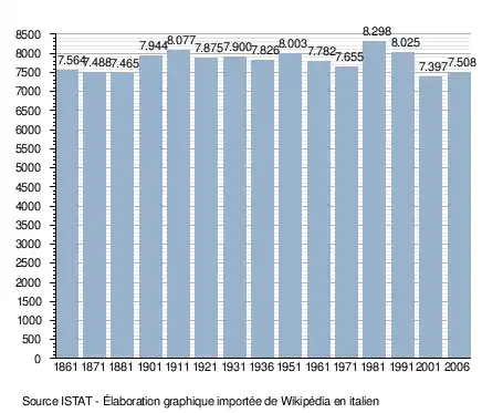 - ↑ (it) Popolazione residente e bilancio demografico sur le site de l'ISTAT.