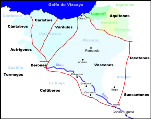 Son territoire était limité avec celui des Caristes et celui des Vascons. On étudie pour savoir s'ils étaient apparentés aux Cantabres, aux Celtes ou aux Vascons.