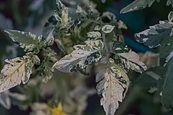 La présence simultanée d'une coloration verte et albinos peut être due à une perte de chlorophylle ou à la formation de couches d'air entre les tissus végétaux[8].