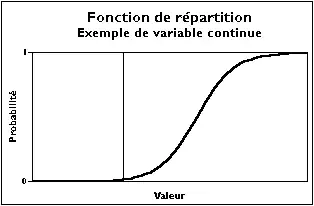 On reconstruit la fonction de répartition (dont les valeurs sont alors appelées probabilités cumulées) par la relation :