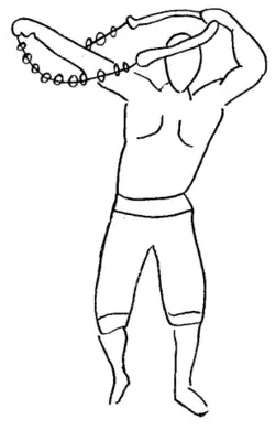 Au lieu de la corde est fixée une grosse chaîne, des disques de métal sont parfois accrochés à cette chaîne.