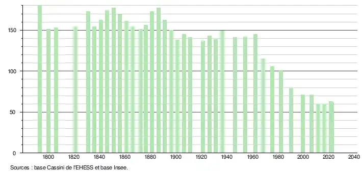 (Sources : Ldh/EHESS/Cassini jusqu'en 1999[1] puis Insee à partir de 2006[29].)