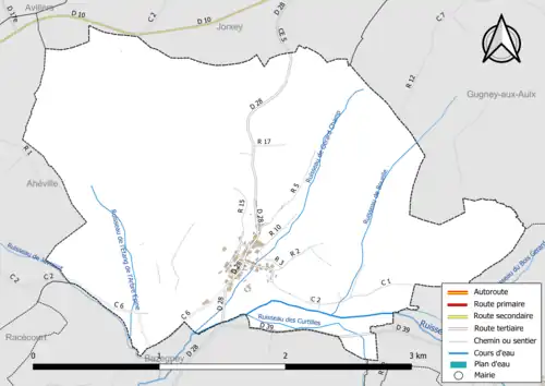Les communes limitrophes sont Ahéville, Bazegney, Derbamont, Gugney-aux-Aulx et Jorxey.