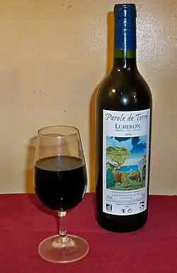 - ↑ Le label Vin de pays d'Aigues concerne les communes suivantes dans le département de Vaucluse : Ansouis, Apt, Auribeau, La Bastide-des-Jourdan, La Bastidonne, Les Beaumettes, Beaumont-de-Pertuis, Bonnieux, Buoux, Cabrières-d'Aigues, Cabrières-d'Avignon, Cadenet, Caseneuve, Castellet, Cavaillon, Cheval-Blanc, Cucuron, Gargas, Gignac, Gordes, Goult, Grambois, L'Isle-sur-la-Sorgue, Joucas, Lacoste, Lagarde-d'Apt, Lagnes, Lauris, Lioux, Lourmarin, Maubec, Ménerbes, Mérindol, Mirabeau, La Motte-d'Aigues, Murs, Oppède, Pertuis, Peypin-d'Aigues, Puget, Puyvert, Robion, Roussillon, Rustrel, Saignon, Saint-Martin-de-Castillon, Saint-Martin-de-la-Brasque, Saint-Pantaléon, Saint-Saturnin-d'Apt, Sannes, Saumane, Sivergues, Les Taillades, La Tour-d'Aigues, Vaugines, Viens, Villars, Villelaure, Vitrolles-en-Luberon.