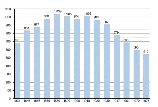 - Sources:INS, Rem:1831 jusqu'en 1970=recensements, 1976= nombre d'habitants au 31 décembre