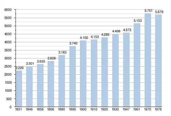 - Sources : INS, Rem. : 1831 jusqu'en 1970 = recensements, 1976 = nombre d'habitants au 31 décembre.