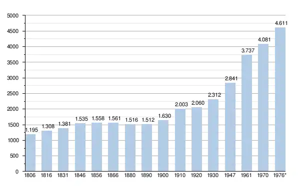 - Sources : INS, Rem. : 1831 jusqu'en 1970 = recensements, 1976 = nombre d'habitants au 31 décembre[2].