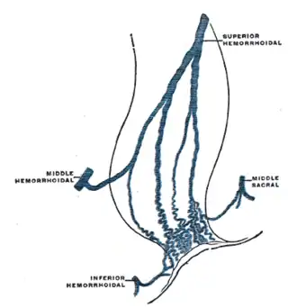Lors d'une hyperpression portale, le sang porte va affluer vers la veine rectale supérieure et grâce aux anastomoses importantes va rejoindre les veines hémorroïdales qui vont se dilater fortement. Le sang va ainsi rejoindre le système cave inférieur. Les veines rectales sont l'une des anastomoses porto-cave.