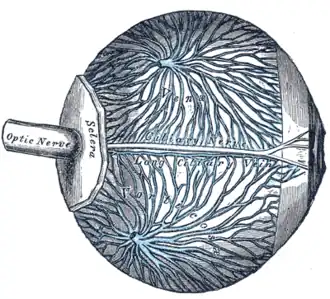 - ↑ Kutoglu, Yalcin, Kocabiyik et Ozan, « Vortex veins: Anatomic investigations on human eyes », Clinical Anatomy, vol. 18, no 4, , p. 269–273 (PMID 15832350, DOI 10.1002/ca.20092)