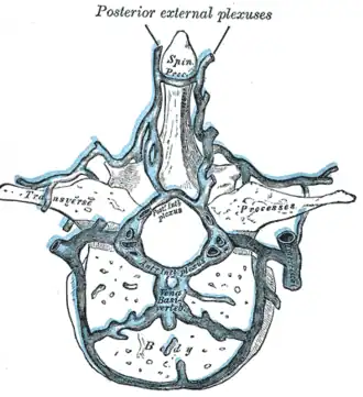 - (en) Cet article est partiellement ou en totalité issu de l’article de Wikipédia en anglais intitulé « Basivertebral veins » (voir la liste des auteurs).