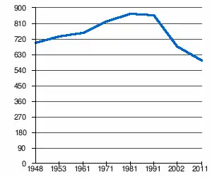 - 1 2 (sr + en) « Livre 20 : Vue d'ensemble comparative de la population en 1948, 1953, 1961, 1971, 1981, 1991, 2002 et 2011, données par localités) » [PDF], pages du recensement de 2011 en Serbie - Institut de statistique de la république de Serbie, (consulté le )