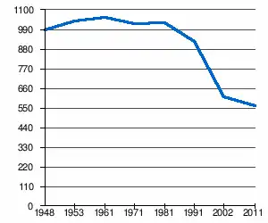 | 988 | 1 036 | 1 057 | 1 020 | 1 030 | 926 | 611[2] | 560[1] |