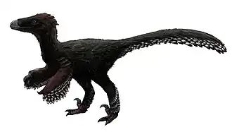 , Bibcode 2010PLoSO...5.9223H) - ↑ (en) J. Lü et S. L. Brusatte, « A large, short-armed, winged dromaeosaurid (Dinosauria: Theropoda) from the Early Cretaceous of China and its implications for feather evolution », Scientific Reports, vol. 5, no 1, , p. 11775 (PMID 26181289, PMCID 4504142, DOI 10.1038/srep11775