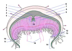 On dit d'une méduse qui possède un vélum qu'elle est craspédote, ou dans le cas contraire acraspédote.