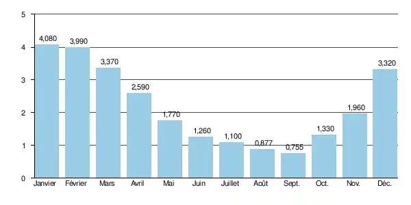 Aux étiages, le VCN3 peut chuter jusque 0,320 m3/s (320 litres par seconde)[2], ce qui ne peut être qualifié de sévère.