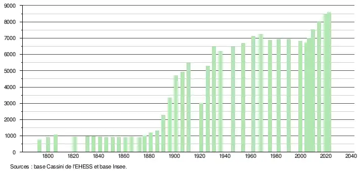 - ↑ Population municipale de référence en vigueur au 1er janvier 2025, millésimée 2022, définie dans les limites territoriales en vigueur au 1er janvier 2024, date de référence statistique : 1er janvier 2022.
