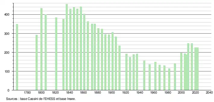 - ↑ Fiches Insee - Populations de référence de la commune pour les années 2006, 2007, 2008, 2009, 2010, 2011, 2012, 2013, 2014, 2015, 2016, 2017, 2018, 2019, 2020, 2021 et 2022.