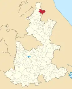 Cette municipalité est limitrophe au nord-ouest de celle de Francisco Z. Mena, à l'ouest de celle de Pantepec, au sud-ouest de celle de Jalpan, puis dans l'État de Veracruz, au sud de celle de Coyutla, à l'est de celle de Coatzintla, et au nord-est de celle de Tihuatlán[2].