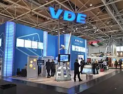 La VDE est la « fédération allemande des industries de l'électrotechnique, de l'électronique et de l'ingénierie de l'information » Verband der Elektrotechnik Elektronik und Informationstechnik e.V..