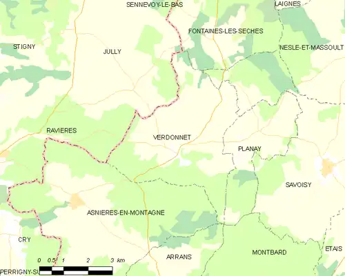 - ↑ « Orthodromie entre Verdonnet et Montbard », sur fr.distance.to (consulté le ).